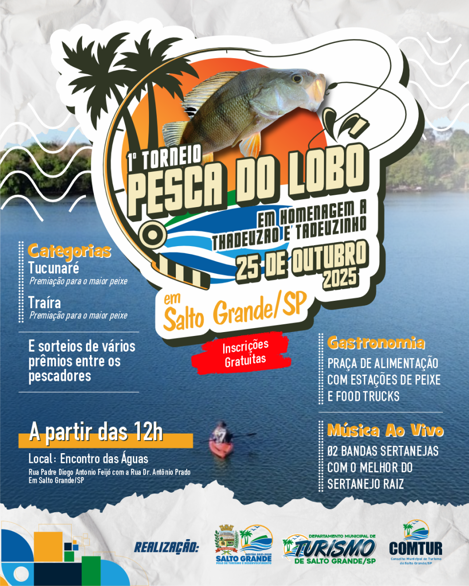No dia 25 de outubro, às margens do nosso querido Rio Paranapanema, será realizado o 1º Torneio de Pesca em homenagem a Thadeuzão e Tadeuzinho, dois filhos ilustres de Salto Grande que deixaram um legado de amizade, simplicidade e amor pela vida.
